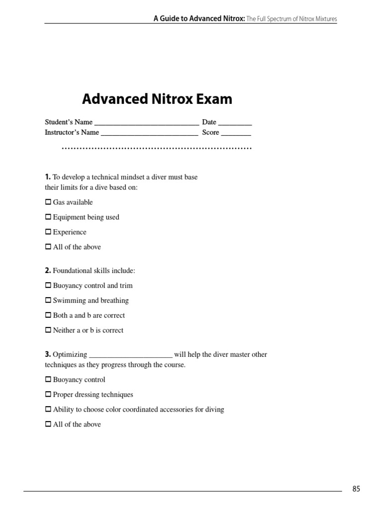 Tdi Advanced Nitrox Final Exam PDF Scuba Diving Underwater Diving